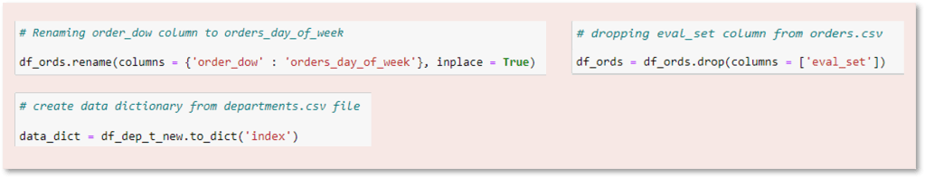 First, data wrangling was performed, including renaming columns and removing unnecessary columns. Also, a data dictionary for the departments was created.