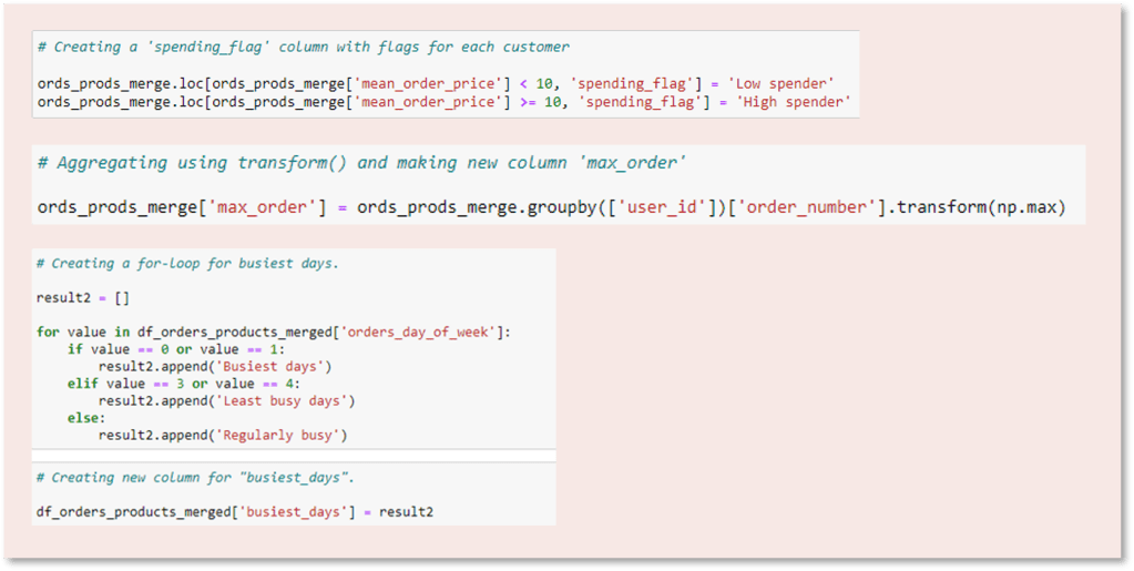 Next, data was grouped and aggregated in various ways to help with the analysis.