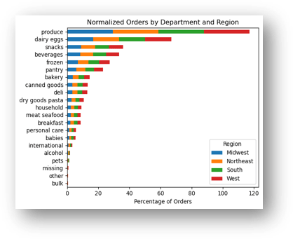 We can see that customers in one region of the US do not order significantly more or less in any department than customers in other regions.
