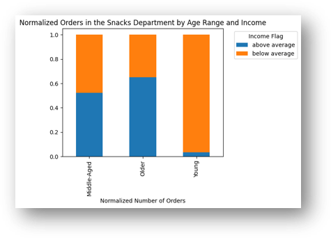From this we can see that above-average-income young people are the least likely to order from the snacks department. A chart for the alcohol department shows a similar distribution there as well.