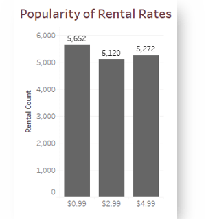- Rockbuster should continue to keep a good stock of movies to rent at the customer-preferred rate of $0.99.